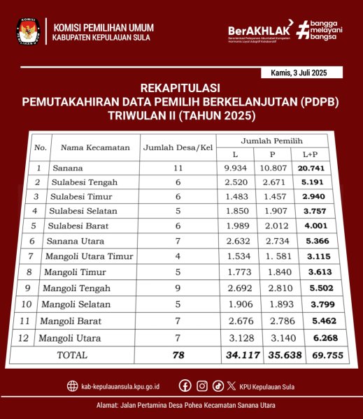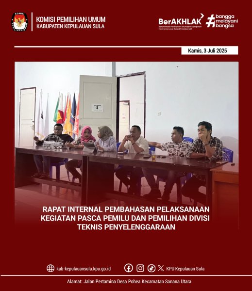Rapat dihadiri oleh Anggota KPU Kabupaten Kepulauan Sula, Samsul Bahri Teapon, Fahrul Pora, Hamida Umalekhoa, Andi Umaternate, dan Staf Sekretariat.