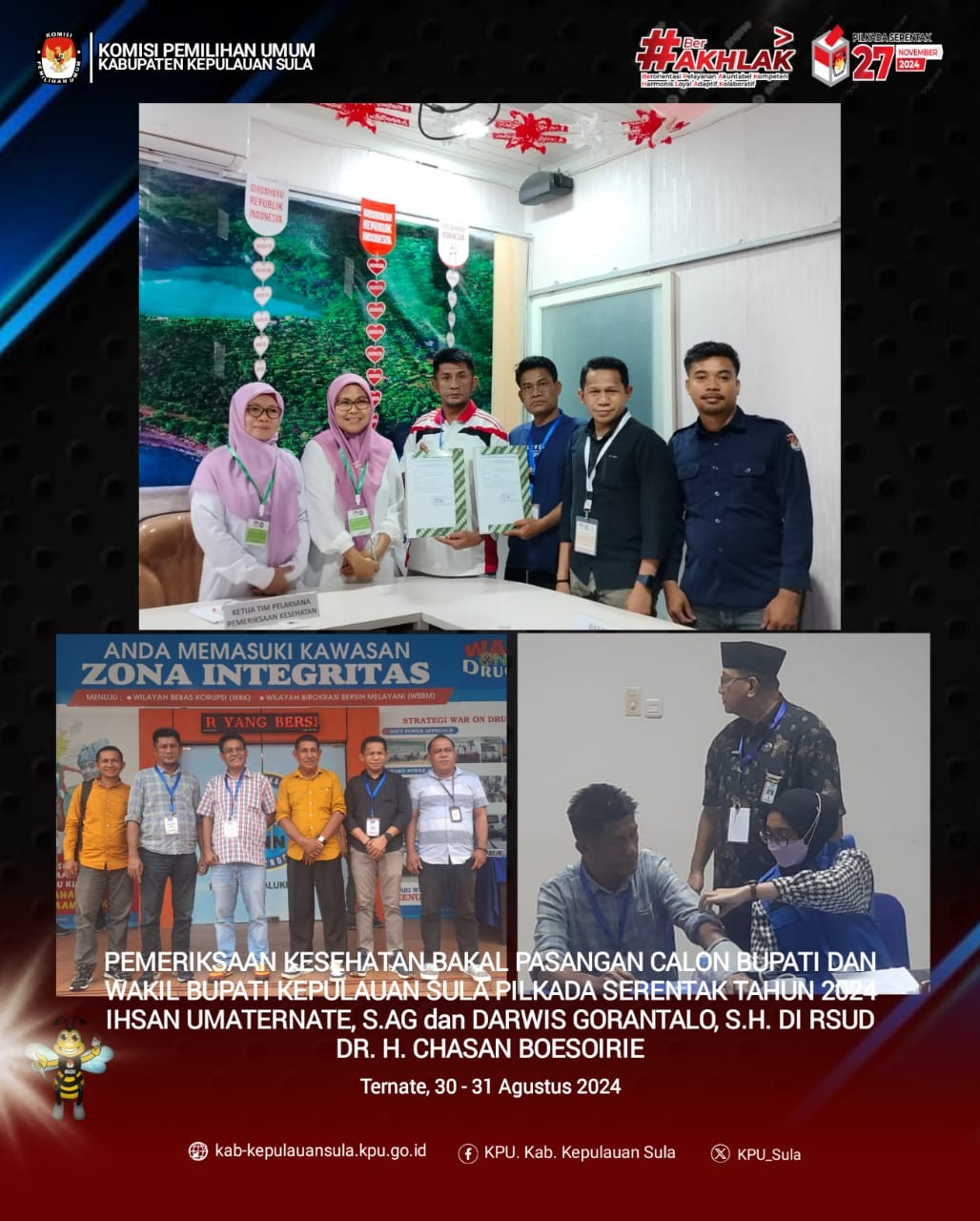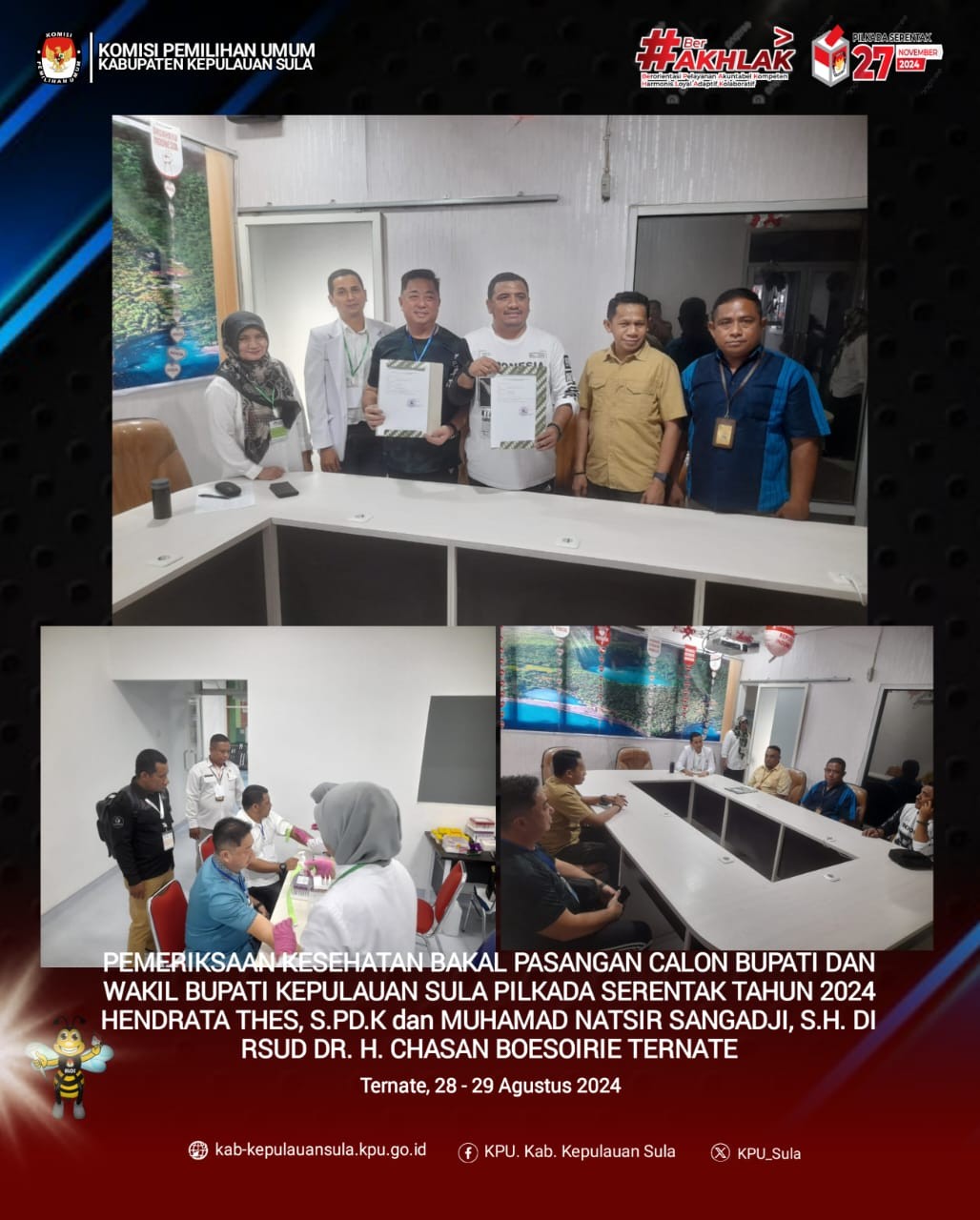Berita acara dan Tanda Terima hasil pemeriksaan administrasi selanjutnya disampaikan kepada dan diserahkan kepada pasangan calon melalui penghubung. Pasangan Calon selanjutnya melakukan pemeriksaan kesehatan pada RSUD Dr. H. Chasan Boesoirie di Ternate.